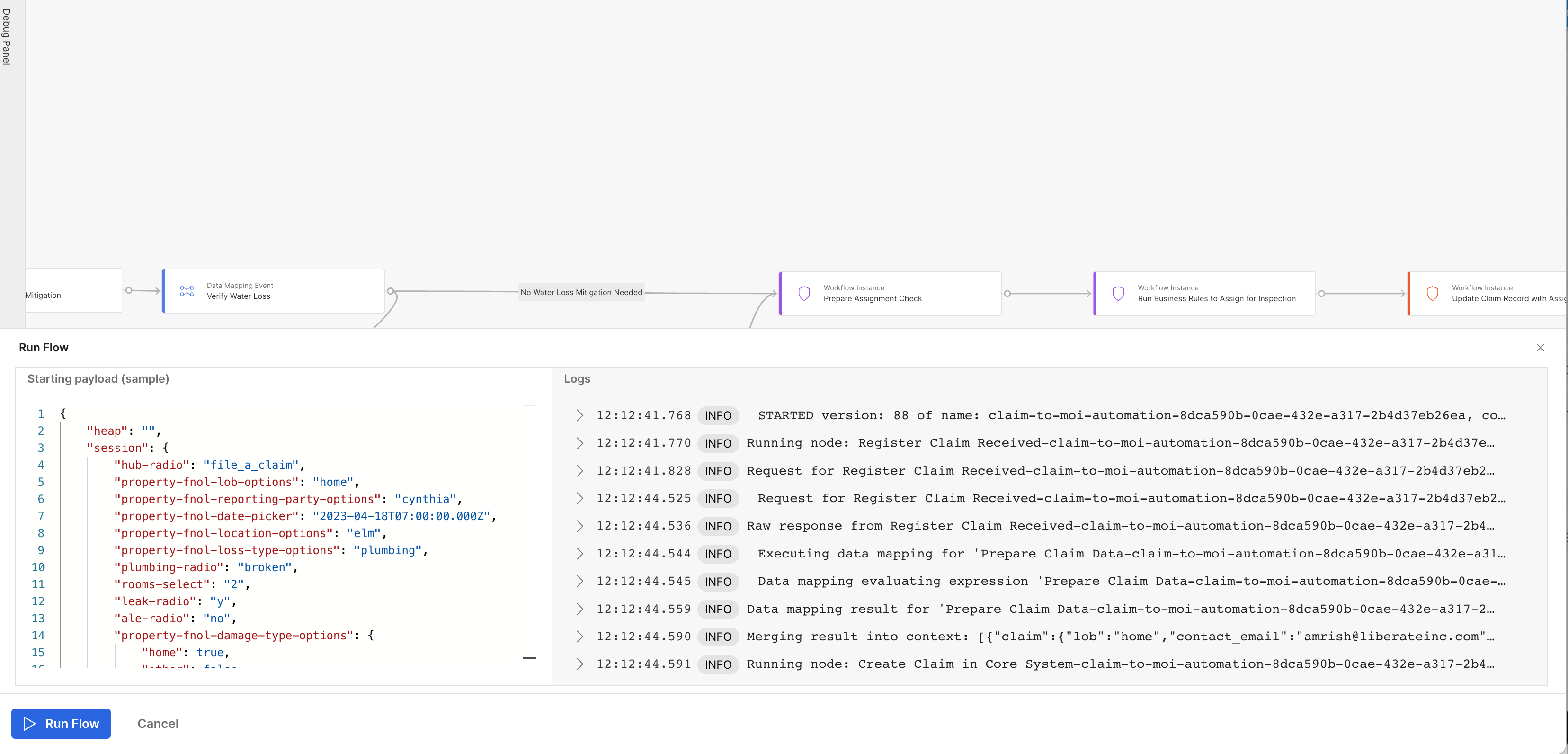 Tips for Effective Testing:To make testing in Preview Mode more efficient, you can leverage the Liberate notes feature. Use this feature to save sample payloads for different scenarios that you want to test in your workflow. By storing sample payloads in notes, you can easily access and reuse them for future testing. This can be particularly useful when you want to examine specific variations or edge cases within your workflow.